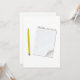 Ce design est un bloc-notes et un crayon. Il s'agit d'un bloc-notes doublé avec le coin de la page supérieure recouvert. Non pas au bloc-notes est un crayon jaune. Tout est prêt à commencer à écrire. Ce bloc-notes et le design crayon semblent très bien sur ces invitations