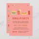 Invitation vos amis et votre famille pour une soirée barbecue dans le jardin de votre nouvelle maison avec cette invitation. On y trouve des aliments de barbecue préférés, dont du hamburger, une boisson soda à l'orange, un petit pain de saucisses pour chien chaud, une bouteille de piments à la sauce pressée. L'invitation se trouve dans la palette de couleurs vintage. Personnalisez-vous facilement avec les détails de votre fête. La page inversée est un motif fait à l'aide des éléments du barbecue. C'est aussi un endroit idéal pour célébrer les anniversaires d'adultes et les fêtes d'été.