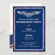 Vous cherchez des invitations de classe pour un ami ou un membre de votre famille qui prend sa retraite de la marine ou de la marine? Voici une invitation patriotique et unique à la retraite, avec un emblème en argent de la force aérienne navale (ailes et ancre) que vous pouvez customiser! Personnalisez avec votre propre texte personnalisé sur les détails de votre parti... Ajoutez même une photographie ou des informations supplémentaires sur le revers de cette carte, illustrée par un drapeau américain agitant. Thème de couleur : rouge, blanc, bleu et argent.Catégorie: stars and stripes, États-Unis d'Amérique (États-Unis) s'est enrôlé dans des cartes de retraite militaires + invitations de partis.
