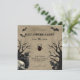 Invitations Rustique Gothique De Fête D'Halloween. Cartes carrés. arbres éffrayants, chauves-souris, corbeau, veuve noire, crâne, roses et toiles d'araignée, le tout sur un arrière - plan rustique.