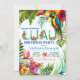 Invitations Luau avec de belles aquarelles perroquets tropicaux et flamants roses sur un arrière - plan coloré de fleurs tropicales et feuilles.Cette invitation de fête d'anniversaire de luau tropical est facilement customisée pour votre événement en ajoutant simplement vos détails. Vous pouvez également changer la couleur arrière - plan sur le devant de cette belle invitation luau aquarelle.