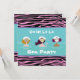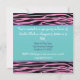 Chaque invitation à une fête spa présente trois femmes ou filles caricaturées trempant dans de l'eau spa avec des masques de boue. Le haut et le bas sont schématisés en papier zèbre rose et noir. Une fine bande de fondu violet est appliquée le long des frontières pour ajouter de la décoration. Le texte en avant dit "OooH La La" et "Spa Party". L'arrière présente la même couleur bleu aqua-pool avec impression zèbre rose et noir avec fondu de bordure violette. Le texte est un style féminin de couleur blanche.