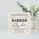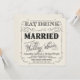 Invitations du wedding shower de signe du couple rustique élégant de panneau -- Mangez la boisson et soyez marié - les rouleaux tourbillonnants et bouclés et le cadre rustique de fantaisie sur l'arrière - plan blanc crème en ivoire de regard de parchemin. Ajoutez les noms des jeunes mariés et l'information de partie de douche dans ce modèle facile à utiliser. Typographie audacieuse de style vintage et calligraphie de fantaisie élégante de manuscrit - changez les styles de police pour refléter votre rétro thème formel ou semi-formel de mariage. Le style carré d'invitation de panneau de craie est parfait pour des mariages modernes à la mode avec un contact d'amusement de charme romantique sophistiqué pour les jeunes mariés traditionnels. NOTE : Cette conception de produit est installée pour les cartes carrées seulement, qui exige l'affranchissement supplémentaire.