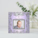 Elégant gris argent tourbillonne lavande violet photo christening modèle invitation. Cette belle invitation à baptiser blanc, violet et gris est facilement customisée pour votre baptême, baptême, première communion ou autre événement religieux en choisissant simplement le bouton "Customisez-le !" pour commencer à ajouter vos photos et détails de l'événement, le style de police, la taille et la couleur de la police et le libellé. Veuillez noter que tous les autocollants, cartes et modèles d'invitation que vous trouverez sur Zazzle sont des graphiques imprimés sans bijoux, arcs, surélevés, gaufrés, ni pièces ou pièces ajoutées.