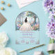Célébrez sa journée magique avec cette invitation Enchanted Garden Quinceañera, magnifiquement imprimée sur une carte en arc acrylique clair. Le design présente une jeune femme étonnante dans une robe blanche chatoyante aux cheveux longs, debout dans une forêt de contes de fées oniriques remplie de fleurs pastel, de champignons d'imaginaires et de scintillants étincelles. Ce cadre élégant et éthérée crée une première impression à couper le souffle pour tout événement de quince años. L'acrylique transparent haut de gamme ajoute une touche de luxe moderne, parfaite pour la forêt enchantée, la fée de jardin ou des thèmes royaux imaginaires. Personnalisez facilement avec vos détails d'événement.