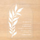 Élevez votre style mariage avec ces invitations acryliques mariages modernes en arche feuille blanche. Dotée d'un design botanique gracieux et de feuilles blancs délicats, cette invitation allie élégance minimaliste et charme contemporain. Le matériau acrylique unique en forme d'arc crée une présentation sophistiquée et mémorable. Entièrement personnalisables avec vos détails de mariage, ces invitations sont une façon étonnante de partager votre journée spéciale.