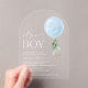 Invitations amis et famille dans le style et donner le ton pour votre journée spéciale avec cette charmante invitation baby shower. Le design comprend un ballon bleu avec des feuilles d'eucalyptus.