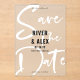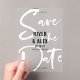 La typographie acrylique enregistre la carte de date avec un script moderne en blanc imprimé sur toute la carte et vos noms en caractères noirs en gras centrés sur l'acrylique moderne enregistrer la carte de date sans photo. Acrylique attrayante pour les yeux enregistrer la carte de date avec un design moderne sans photo avec polices cool en gras et un arrière - plan transparent qui fait que votre enregistrer la carte de date se démarque.