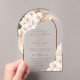 Des bouquets d'orchidées tropicales blanches, d'herbe de pampas et de frondes de feuilles de palmier séchées ornent ce faire-part de mariage, avec une arche moderne, et un code couleur monochromatique dans les tons terre de terre de terre de terre cuite et crème. Trouvez des produits correspondants dans la collection ou envoyez-moi un message par Zazzle Conversation pour plus de produits, de modifications de conception ou de colorways.