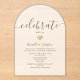 Faire-part de mariage acrylique simple et moderne avec un arrière - plan transparent gelé et un coeur doré romantique. Elégant et minimaliste, parfait pour votre réception de mariage "Celebrate With Us" !