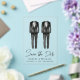Elégant et chic mariage gay enregistrer la date claire acrylique faire-part avec deux aquarelles tuxedo et "Save the Date" dans un script élégant. Ajoutez vos noms, date mariage et emplacement dans la typographie moderne.