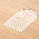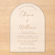 Faire-part de mariage acrylique gelée en forme d'arc chic avec les noms de la mariée et du marié dans un script de calligraphie or et vos détails mariages dans le lettrage doré moderne. Ajustez la taille de la police de script dans l'outil de conception pour des noms plus longs ou plus courts si vous le souhaitez.