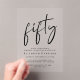 Élevez votre fête de 50ème anniversaire avec cette invitation acrylique claire avec "cinquante" dans un script chic, votre nom dans la typographie serif élégante et les détails de la fête en lettres simples et modernes,
