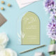Avec une palette de couleurs allant de l'ivoire au vert printanier et la mousse foncée, cette collection mariage dispose d'une police manuscrite et des accents de feuilles d'eucalyptus pour ajouter cette merveilleuse touche moderne. L'invitation acrylique présentée ici a tout ce qui précède avec un arrière - plan frappant de formes voûtées qui le fait se démarquer de la foule. Ajoutez les détails de votre événement à l'aide du modèle fourni. Recherchez ID901 pour voir d'autres choix de couleurs et coordonner des pièces pour cette collection de mariages unique.