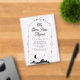 Elégant mariage à thème céleste Save the Date avec une belle illustration montrant lune croissant, étoiles et montagnes avec typographie moderne.