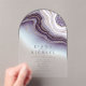Une combinaison attrayante d'aubergine profonde, d'améthyste, d'agate marbrée bleu et blanc doux, texturée avec des faux cristaux et surlignée en or brillant crée l'arrière - plan pour les pièces de cette collection coordonnée. Une police serif propre et moderne et des taches d'or aspergées complètent ce style design saisissant. Cette élégante faire-part de mariage acrylique en forme d'arc présente tous les éléments ci-dessus avec un arrière - plan doux et aquarelle, et un modèle pour ajouter facilement les détails de votre événement. Affichez le lien de collection sur cette page pour voir tous les éléments correspondants dans cette belle conception ou recherchez ID825 pour voir des choix de couleurs supplémentaires pour cet ensemble.