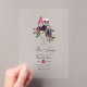 Célébrez la mariée à être en style avec cette élégante invitation en acrylique transparente pour une soirée de bachelorette dégustation de vin ou tout événement. Dotée d'un design sophistiqué avec une bouteille de vin, du verre et des fleurs en cascade bordeaux et rousses, cette invitation est parfaite pour les amateurs de vin. Entièrement personnalisable, c’est une façon chic et mémorable pour les invitations de célébrer votre fête.