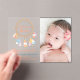Bohemian tribal dreamcatcher loop with beads and feathers in pastel colors. Gender neutral baby birth announcement card, can be used for either a boy or a girl. Customize with your baby photo and information.