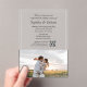 Celebrate the beginning of your forever with this stunning acrylic wedding invitation, designed to bring a modern and luxurious touch to your special day. At the top, the text combines elegant calligraphy with a classic serif font, creating a perfect balance of sophistication and charm. At the bottom, add your favorite photo to personalize this invitation and make it uniquely yours. Crafted on sleek acrylic, this invitation exudes contemporary elegance, making it ideal for modern and minimalist weddings. Its timeless design and premium finish set the tone for a celebration filled with love, joy, and unforgettable memories.