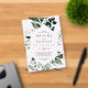 The elegant yet rustic design features moody dark green watercolor leaves and eucalyptus with a modern bohemian woodland feel.