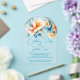 Invitations En Acrylique Fête Anniversaire Bleu Jaune Fleurs blanches