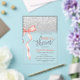 Une jolie invitation au baby shower présente un arc rose sur un arrière - plan bokeh parties scintillant argent. Ces invitations à la douche nuptiale sont facilement customisées pour votre événement en ajoutant simplement vos détails.