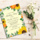Invitation rustique d'anniversaire de pays avec des tournesols vibrants, des marguerites blanches traditionnelles et des fleurs d'orange contre un arrière - plan jaune clair avec l'haleine du bébé et des accents de verdure botanique