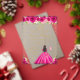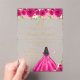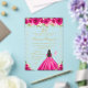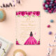 Cette invitation à la fête d'anniversaire élégante et séduisante présente une belle princesse aux cheveux foncés et à la peau foncée dans une robe de bal rose chaud. Le texte combine écriture manuscrite et polices sans serif modernes pour un look élégant et sophistiqué. Les compositions florales, les papillons et les confettis d'or créent un mélange parfait de rustique et de chic. Graphiques par www.etsy.com/uk/shop/SunflowerDayLove