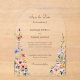 Bordures fleur sauvage chic boho romantique en bleu pâle, rose et jaune sur acrylique clair. Cette charmante collection est le complément parfait à votre mariage sur le thème du printemps, de l'été ou du jardin.