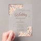 Une invitation moderne, design et romantique à une mariage. Arrière - plan clair et transparent. Décoré de fleurs crème, beige. Personnalisez et ajoutez vos noms et les détails.