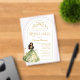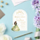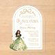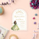 Invitation vos invités à une célébration magique avec cette invitation acrylique de Quinceañera enchanteresse! Doté d'une belle princesse brune dans une superbe robe verte ornée de papillons dorés et d'éléments botaniques, ce design ouvre la voie à une soirée féerique. Les détails élégants de l'arc et de l'arc doré apportent une touche de régalité. Personnalisez le modèle avec le nom de votre fille et tous les détails importants de la fête. © Kimbellished, LLC