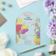 Cette belle invitation au 50ème anniversaire a une forme d'arc très chic et est richement décoré avec des fleurs multicolores tendance. Les fleurs sont le millepertuis, le snapdragon et les fleurs murales de Saint-Jean, avec un design transparent inspiré par les vitraux. Tous les textes sont écrits avec une typographie raffinée sur un arrière - plan en verre dépoli pour une meilleure lisibilité et sont personnalisables. Vous pouvez alors utiliser cette carte pour toute autre occasion ou tout autre anniversaire. Parfait pour un heureux 50e anniversaire florissant !