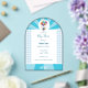 Baby shower chaleureux Invitation acrylique avec blanc et bleu. Coupé avec un bébé volant transporté dans des ballons. Un beau gardien de la plus belle occasion