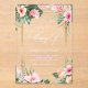 Donnez le ton à votre mariage de rêve avec cette invitation Acrylique de mariage Gold Pink Tropical Beach Destination Mariage. Doté d'accents tropicaux luxuriants dans des détails roses vibrants et d'or élégant, cette invitation acrylique moderne est parfaite pour un magnifique mariage sur la plage. Le mélange de luxe et d'atmosphère tropicale apporte une touche chic et sophistiquée, idéale pour la célébration de mariage de votre destination.