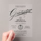 Célébrez la réussite de votre diplômé avec une sophistication intemporelle en utilisant notre invitation formelle et élégante de graduation acrylique. Avec une typographie raffinée et des accents de script gracieux, cette invitation est parfaite pour annoncer à la fois la cérémonie de remise des diplômes et un rassemblement festif - le tout en une carte magnifiquement conçue. Conçu pour les diplômés du secondaire, du collégial ou d'un diplôme d'études supérieures, cette invitation allie design classique et touche personnelle. Et pour un détail extra-spécial, le dos de la carte comprend de l'espace pour une photo de votre diplômé, parfait pour présenter leur portrait supérieur ou un souvenir favori. Détails : Le devant comprend la date de la cérémonie de remise des diplômes, l'heure et l'emplacement, l'espace pour la maison ouverte, la réception ou les informations sur la célébration et le dos de la carte comprend une zone photo personnalisable. Faites une impression durable avec une invitation à la remise des diplômes aussi polie et significative que l’étape qu’elle honore.