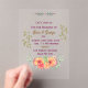 Célébrez votre amour avec élégance et sophistication grâce à notre faire-part de mariage acrylique personnalisée. Fabriquée à partir d'acrylique transparent haut de gamme, cette invitation moderne ajoute une touche de luxe à votre journée spéciale. Le design élégant et transparent présente magnifiquement vos détails personnalisés, ce qui en fait un souvenir inoubliable pour vos invités. Parfait pour les mariages contemporains, les cérémonies de destination ou les couples qui aiment le style intemporel. Customisez avec vos noms, votre date de mariage et votre message pour créer une invitation qui vous est propre.
