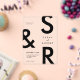 Faire-part de mariage moderne de Monogramme Noir. Caractéristiques typographie audacieuse et design graphique minimal. Personnalisez le texte avec tous les détails de votre journée spéciale.