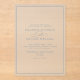 L'invitation en acrylique Mariage classique bleu Dusty incarne l'essence de l'élégance sobre avec sa palette de couleurs délicates et son design sophistiqué. Le bleu poussiéreux, doux et tranquille, évoque le sentiment de sérénité et de charme intemporel, tandis que la police de caractères audacieuse ajoute un air de raffinement, faisant de cette invitation un choix parfait pour les couples qui cherchent à mélanger la tradition et l'esprit moderne. Maintenant disponible en acrylique transparent ou dépoli, ce design prend une nouvelle dimension saisissante, offrant une finition moderne et élégante qui améliore son attrait intemporel. L'acrylique polyvalent ajoute une touche lumineuse, parfaite pour rendre vos invitations aussi inoubliables que les moments qu'elles célèbrent. Choisissez entre 15 ou 40 mm d'épaisseur. Que vous soyez l’hôte d’un rassemblement intime ou d’une grande aventure, cette invitation en acrylique est à la fois une invitation formelle et un souvenir que vos invités apprécieront. Si vous désirez une palette de couleurs différente ou des réglages subtils de la conception, n'hésitez pas à communiquer avec nous. Je suis heureux de travailler avec vous pour créer une invitation qui correspond parfaitement à votre vision mariage. Copyright Anastasia Surridge, tous droits réservés.