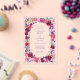 Invitations Acryliques Fleurs sauvages Audacieuses. Célébrez votre amour avec le mélange parfait de l'élégance moderne et de la beauté intemporelle avec cette faire-part de mariage acrylique avec une étonnante aquarelle de couronne florale. De délicieux roses, anémones, cosmos, marguerites et delphinium aux riches tons de bijoux (rose, rouge profond, bordeaux, blues et violet) sont encadrés de verdure émeraude et d'eucalyptus, créant un design à la fois romantique et raffiné. L'arrière - plan en acrylique transparent ajoute une touche contemporaine et sophistiquée, ce qui rend cette invitation parfaite pour les mariages en toute saison, des chauds rassemblements d'automne et d'hiver aux brillantes affaires du jardin de printemps et d'été. Entièrement personnalisable avec vos styles de texte et de police préférés, ce gardien élégant vous préparera le terrain pour votre célébration inoubliable.