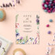 Éblouissez vos invités avec cet élégant enregistrer la date avec de belles fleurs et la typographie moderne. Ajoutez simplement les détails de votre événement sur ce modèle facile à utiliser pour en faire une carte unique de sauvegarde de la date.
