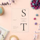 Faire-part de mariage acrylique minimaliste moderne. Caractéristiques de la typographie monographique et conception graphique minimale. Personnalisez le texte avec tous les détails de votre journée spéciale.