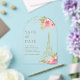 Éblouissez vos invités avec cette élégante sauvegarde la date avec de belles fleurs et la jolie Tour Eiffel. Ajoutez simplement les détails de votre événement sur ce modèle facile à utiliser pour en faire une carte unique de sauvegarde de la date.