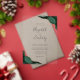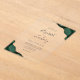 Deux coins de cette élégante faire-part de mariage moderne présentent une aquarelle vert émeraude parée d'une parties scintillant en faux or. Le texte personnalisable combine écriture manuscrite, copperplate et polices italiques en gris fusain sur un arrière - plan clair.