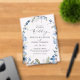 Cette élégante invitation de la collection Pressed Florals présente des flancs d'aquarelle bleu poussiéreux aux délicates vignes verdoyantes, assortis à une police de caractères de script moderne. Parfait pour toute saison. Pour effectuer des modifications anticipées, sélectionnez Personnaliser -> Modifier à l'aide de l'outil de conception.