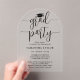 Partagez la joie d'un baccalauréat ou d'un collège et la famille et les amis invitations à célébrer avec d'élégantes invitations de fête en arc acrylique gelé. Le libellé de ce modèle est simple à personnaliser et les couleurs sont faciles à changer avec l'outil de design Zazzle. Reposez cette invitation translucide et claire avec un carte photo pour un effet moderne chic. Le design est composé d'un casquette en carton de mortier, de calligraphie en écriture noire tendance et d'une élégante typographie classique. Cette carte de remise de diplômes est une façon élégante d'annoncer une fête spéciale. Félicitations au diplômé !