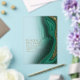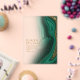 Cet ensemble de design mariage, avec son motif abstrait d'ondulations fluides et de veines d'or scintillant, rappelle les formations rocheuses et les paysages du sud-ouest. La palette de couleurs à bijoux dans les tons vert émeraude ajoute à l'attrait. L'invitation acrylique présentée ici a tout ce qui précède sur un arrière - plan transparent. Ajoutez facilement les détails de votre événement en utilisant le modèle fourni. Recherchez ID903 pour voir d'autres choix de couleurs et coordonner des pièces pour cette collection de mariages unique.