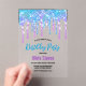 Parties scintillant mignonne Aqua violet Drips monogramme d'anniversaire transparent Acrylique Invitations pour n'importe quel âge avec parties scintillant cool pétillants. Pour le rendre spécial, vous le personnaliserez avec vos propres informations avec de belles polices monographiques. VEUILLEZ NOTER : Il s'agit de graphiques imprimés plats - pas de parties scintillant réelle, de bijoux ou de pièces surélevées.