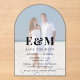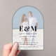 En forme d'arc acrylique, enregistrez le faire-part mariage date qui comprend votre photo superposée avec vos initiales monogrammes dans une grande élégante typographie serif. Customisez votre enregistrer les détails de la date dans une écriture moderne.