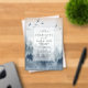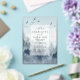 Un doux lavage d'aquarelle sereine de pins et d'oiseaux volant au-dessus dans des teintes douces de bleu, pour une faire-part de mariage acrylique gelée avec élégance rustique. Disponible en version imprimée, en téléchargement numérique ou les deux.