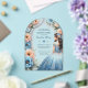 Invitations En Acrylique Quinceañera Dusty Bleu Pêche Fleurs Robe Argent